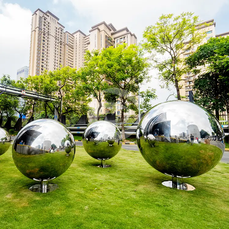 Landscape/garden steel Balls: At present time. large metal garden balls is significant element for contemporary architectural and artistic design.Many artists and sculptors integrate our large stainless steel spheres to their landscape project and garden decoration. High reflective mirror finished accent will bring the guests a impact visual. the mirror convex surface reflecting the surroundings for a charming scenery.