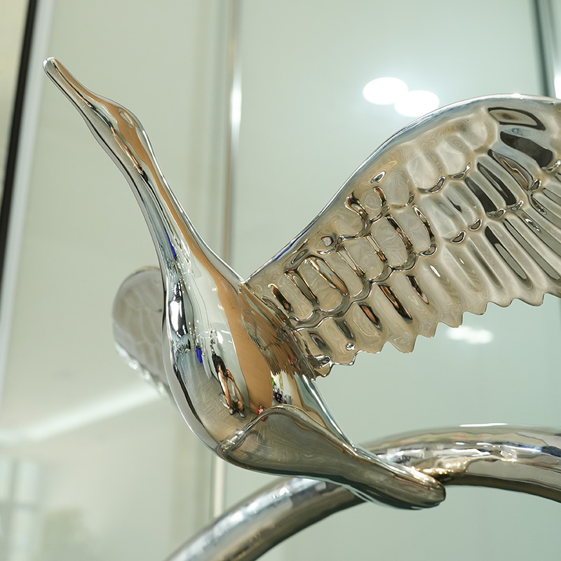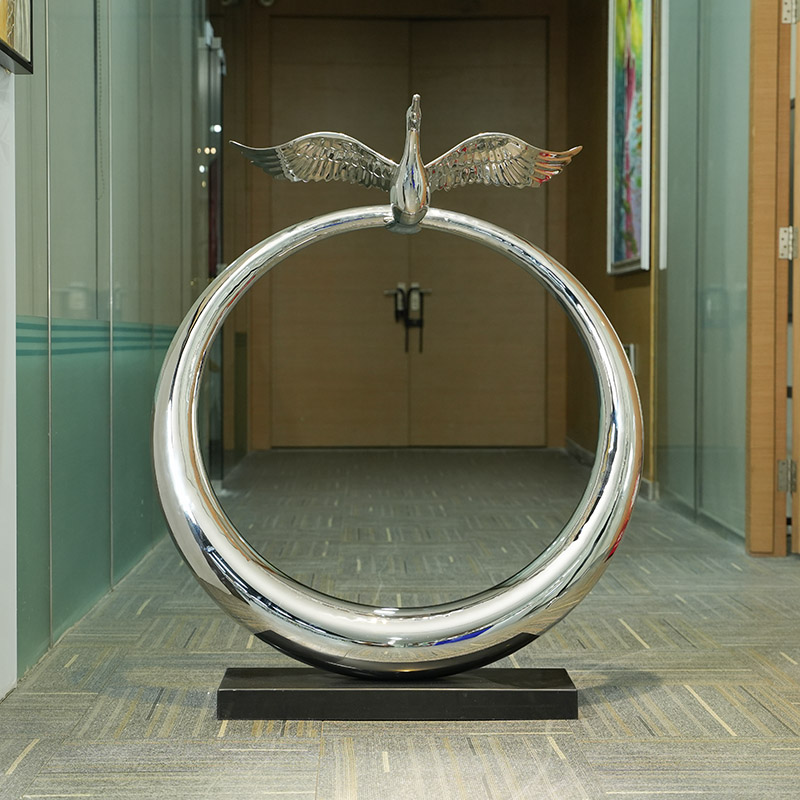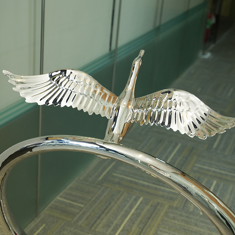 This sculpture combines the beauty of nature and geometric forms. It is made of high-quality 304 stainless steel with excellent corrosion resistance and gloss. The flying bird in the sculpture shows the power of life, while the ring structure symbolizes eternity and harmony. This sculpture is not only the perfect decoration for the interior space, but also becomes an eye-catching focal point. The product supports customized sizes to meet your specific needs.