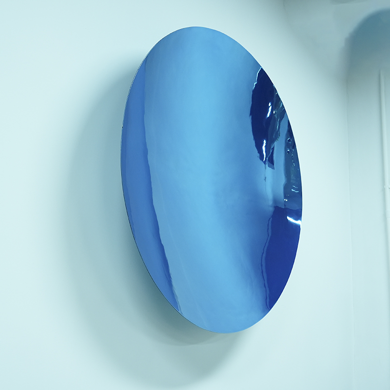This blue stainless steel concave-convex mirror wall decoration is made of high-quality stainless steel, and the surface is mirror-polished to reflect a luxurious golden luster. Its unique concave-convex design not only increases the three-dimensional sense, but also creates a unique light and shadow effect. Whether it is home, office or public space, this wall decoration is the best choice to enhance the artistic atmosphere of the environment.