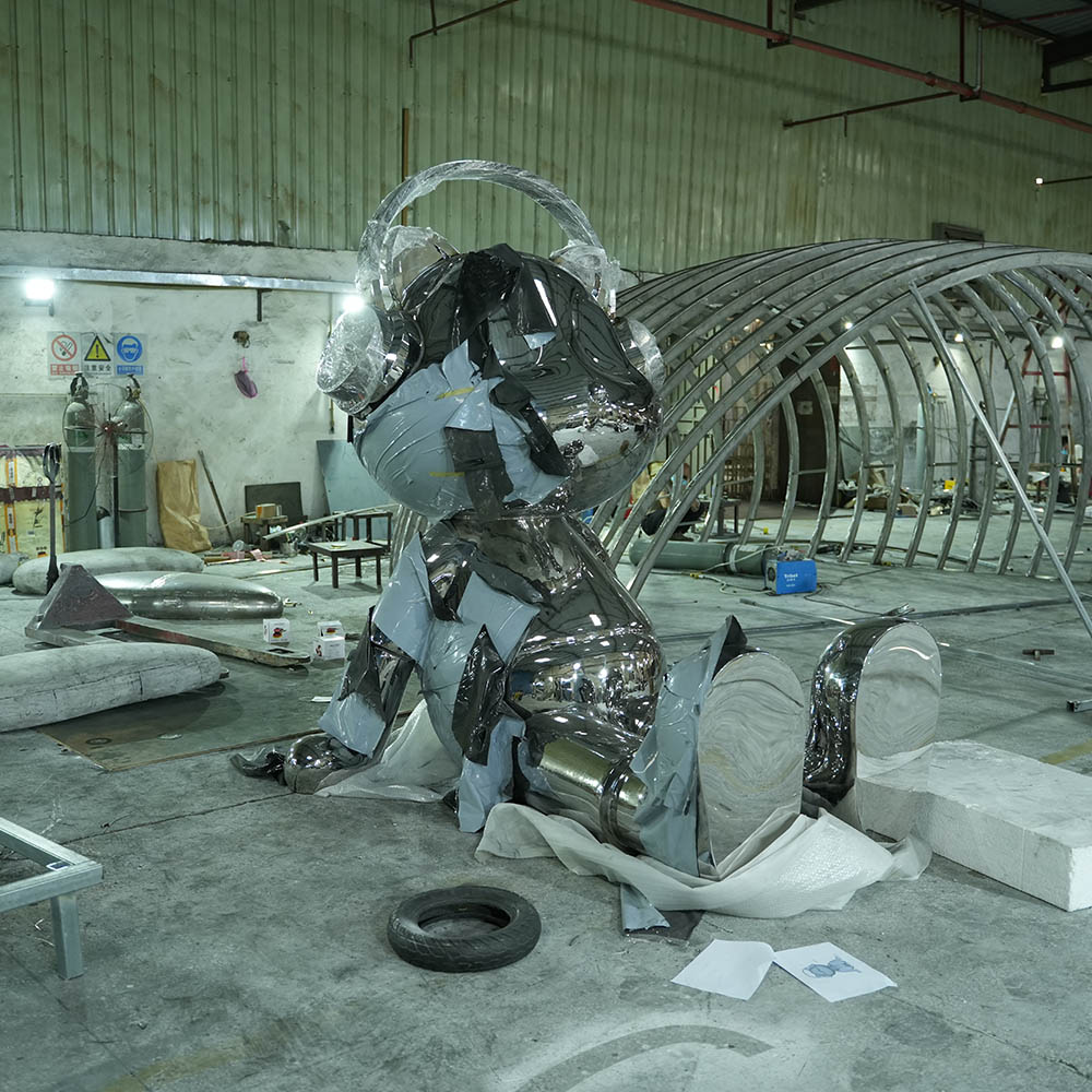 Custom cartoon metal sculptures, Sound of the Future series art installations