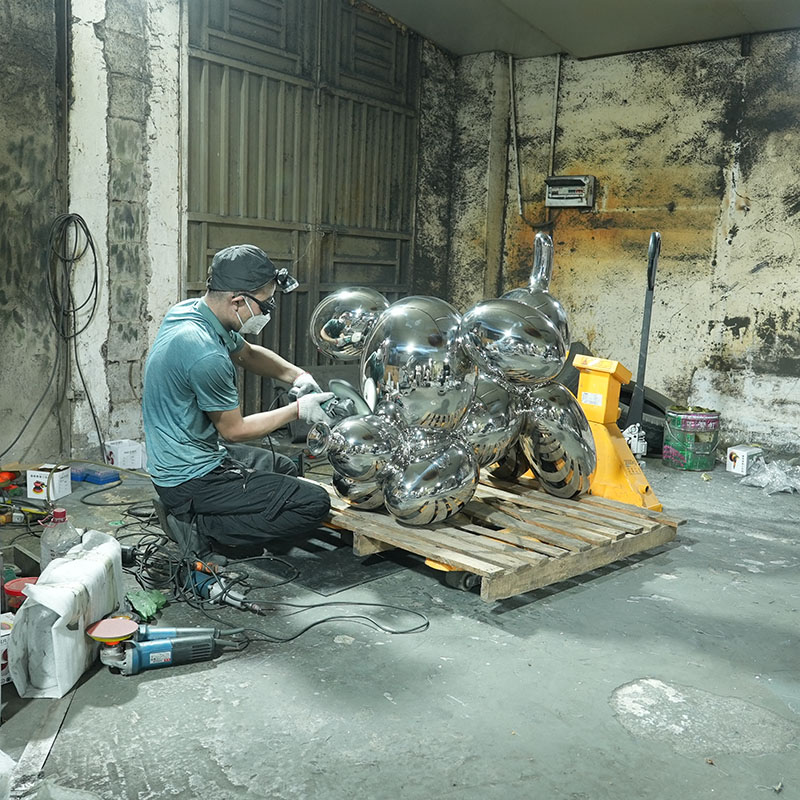 This stainless steel mirrored balloon dog sculpture is a unique work of modern art. The sculpture is made of high-quality stainless steel and the surface is carefully polished to present an ultimate mirror effect. It can reflect the surrounding environment and add a unique artistic atmosphere to the space.