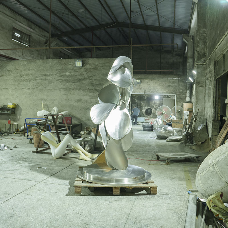 This stainless steel dancing sculpture is a beautiful modern abstract art piece that features a multi-layered disc-like structure that creates a spinning, dancing visual effect. Made of high-quality stainless steel, the sculpture is durable and sturdy.