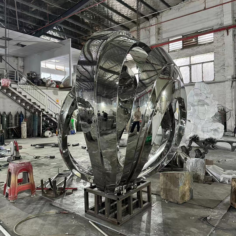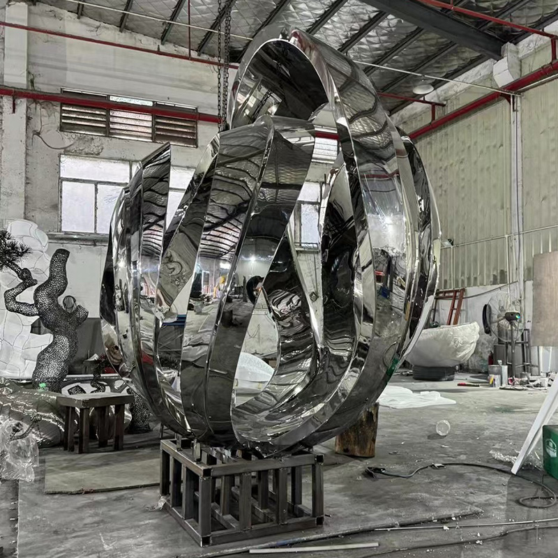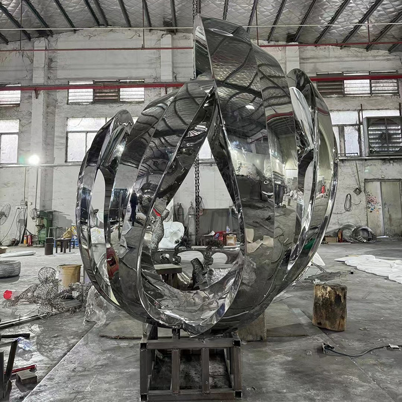 Made of polished stainless steel, this unique sculpture displays an elegant petal shape, symbolizing the vitality and beauty of the city. Its streamlined design blends perfectly with the smooth surface, reflecting the surrounding environment and giving it an ever-changing visual effect. Suitable for city squares, parks or commercial areas, it adds a modern artistic touch to public spaces.