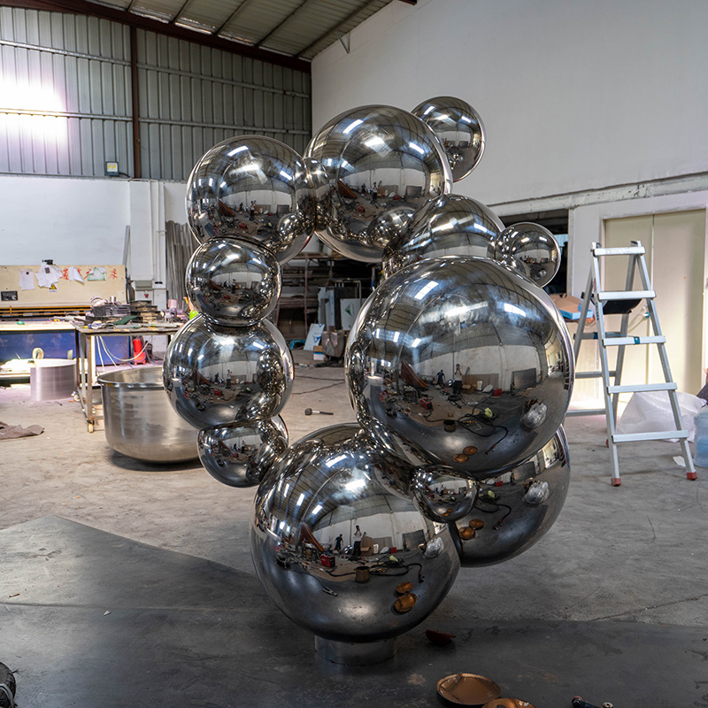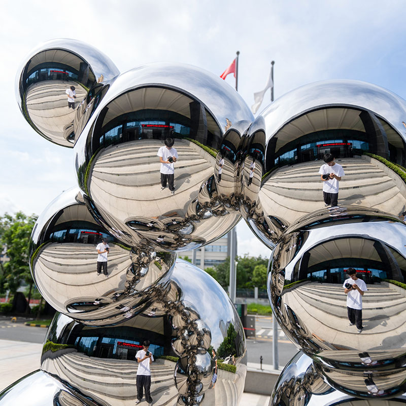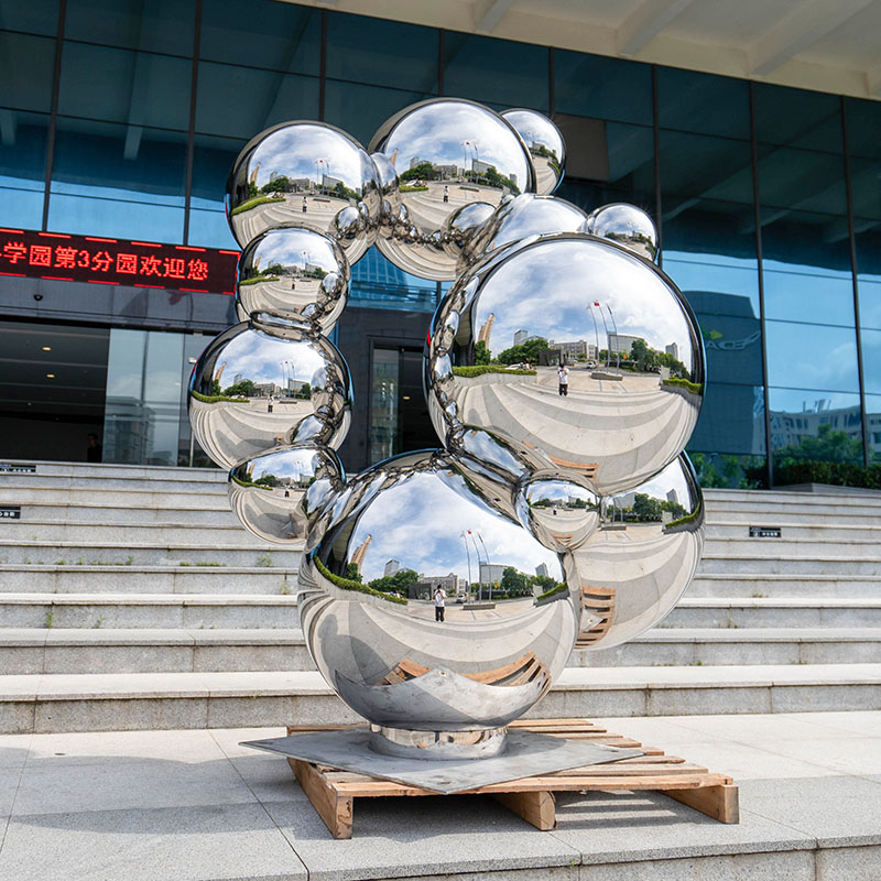 Dance of Reflection is a sculpture composed of multiple mirrored stainless steel spheres, showing a unique modern art style. The smooth mirror surface of each sphere not only reflects the surrounding environment, but also creates a visual sense of dynamics and infinite space. This sculpture is suitable for installation in outdoor squares, commercial centers or art parks, which can enhance the artistic atmosphere of the venue and become an eye-catching focus. Its weather-resistant stainless steel material ensures the sculpture’s long-lasting beauty in various environments.