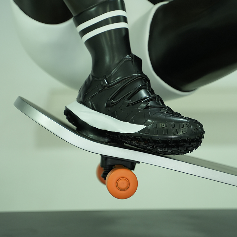 This extreme skateboarder sculpture is made of high-quality fiberglass and shows a skateboarder in smooth motion. The sculpture’s dynamic pose combined with a modern style is suitable for commercial display, extreme sports venue decoration or personal collection. Whether indoors or outdoors, this sculpture can add a unique artistic atmosphere and vitality. It is suitable for various art display scenes to show vitality and sportsmanship.
