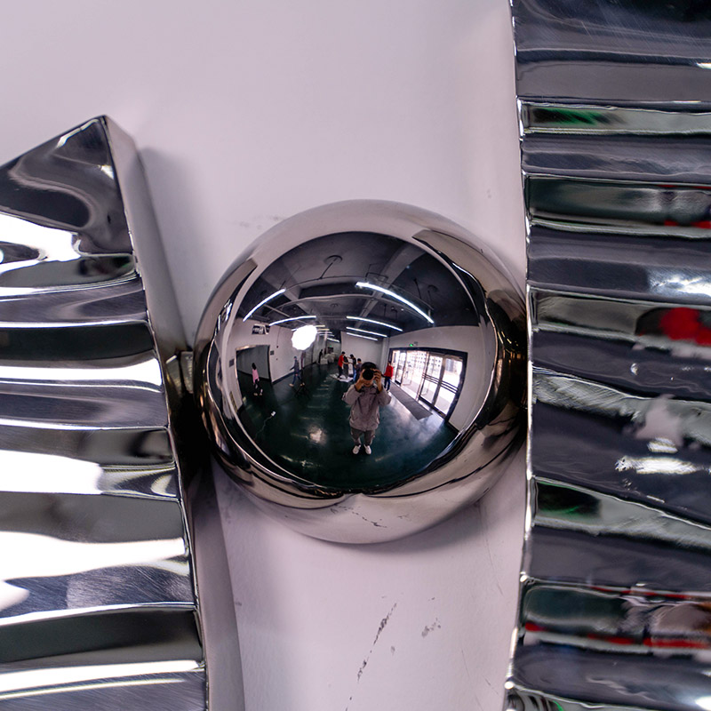 This “Harmonious Round Dance” wall decoration has a unique circular segmentation design, combined with ripples and spheres, showing an artistic beauty that combines movement and stillness. The mirror finish gives it a modern feel, making it a great choice for decorating your living room, bedroom or office. This wall decoration is made of high-quality stainless steel to ensure its durability and visual appeal.