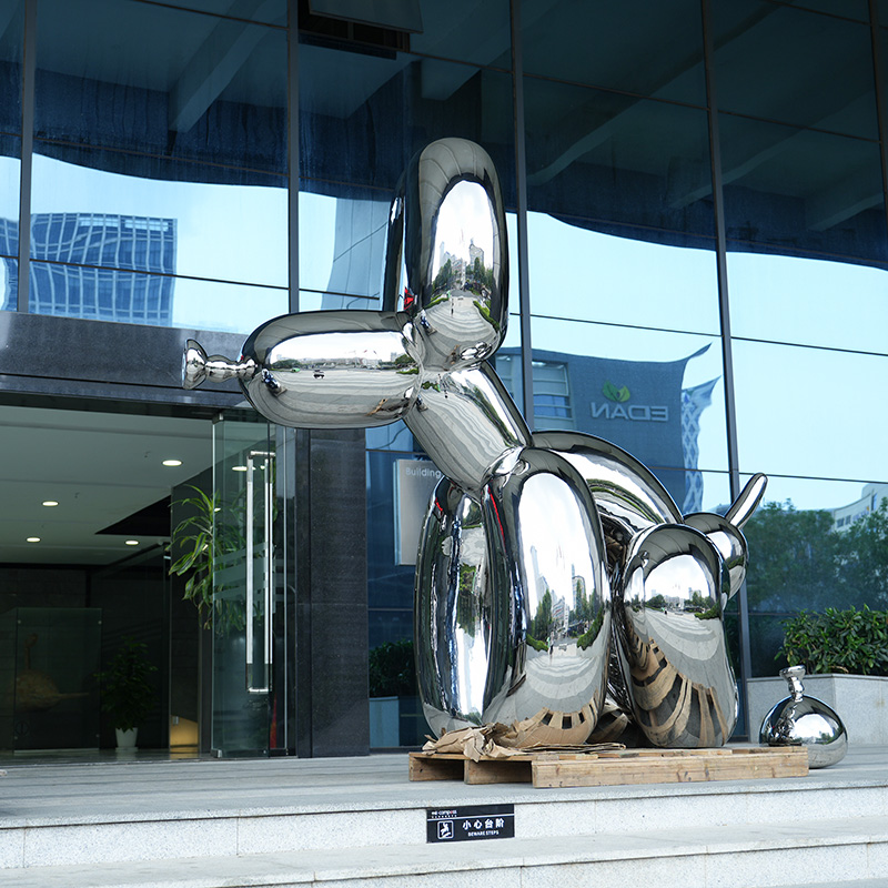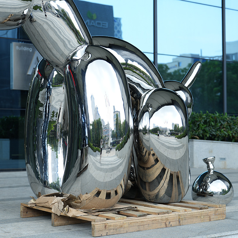 This stainless steel balloon dog sculpture cleverly combines modern art with childlike elements, attracting many eyes with its unique shape and smooth mirror effect. The shape of the balloon dog is derived from classic balloon art. It is made of high-quality stainless steel, which is not only durable but also has excellent anti-oxidation properties. Whether it is placed in a city square, park or shopping mall, it can add vitality and fun to the environment. The surface of the sculpture has been finely polished, and it can show charming light and shadow effects under different light, making it the best choice for modern public art.