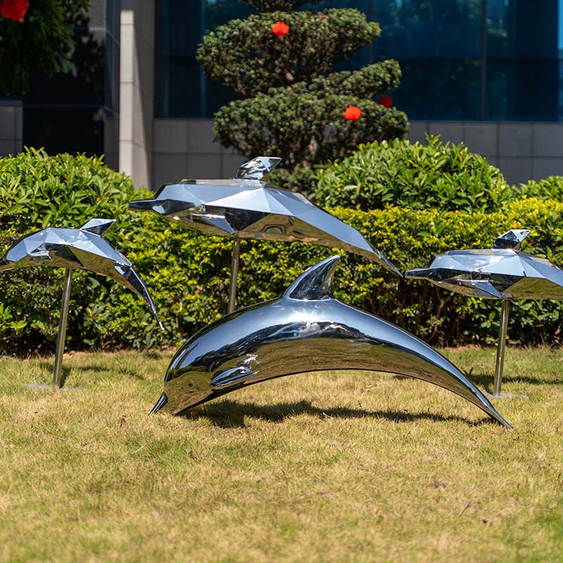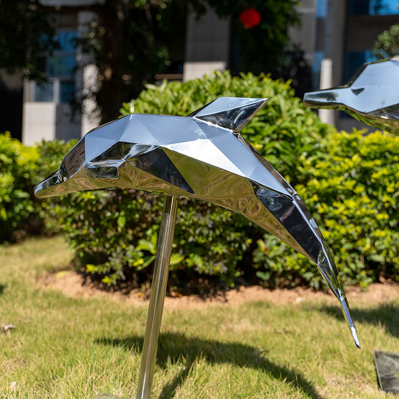 Leaping Over the Sea is a group of modern metal sculptures full of vitality and vigor. The sculpture group is composed of multiple exquisite dolphin shapes, each of which is carefully mirror-polished to show a smooth metal texture and natural beauty. Some of the dolphins are designed with geometric cuts, which increases the modernity and interest of the art. This group of sculptures is not only suitable for outdoor gardens and public spaces, but also can add a touch of dynamic and harmonious beauty to seaside resorts or waterscapes.