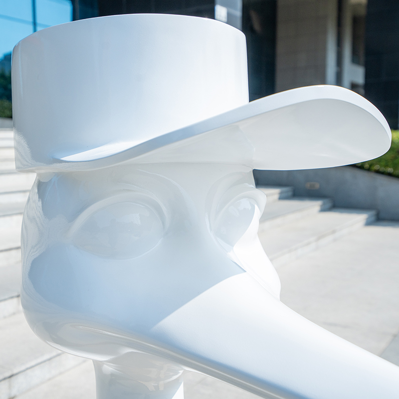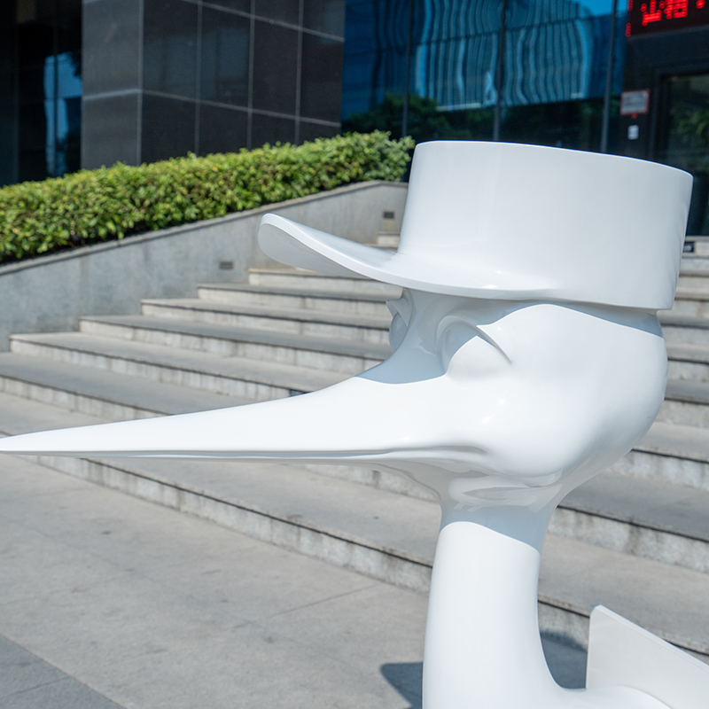 This is a fun modern art sculpture with a unique image and personality. The sculpture adopts a simple white design and is suitable for being placed in a courtyard, garden or indoor space, adding a touch of humor and artistic atmosphere to the environment. The work symbolizes calmness and elegance and is an ideal choice for art decoration.