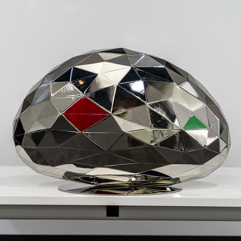 This modern and artistic metal mirror multi-faceted decorative sculpture is a perfect combination of geometric aesthetics and stylish design. Its unique multi-faceted cut and high-gloss mirror effect can add an avant-garde and sophisticated atmosphere to any space. Whether it is the focal point of the living room or the finishing touch of the office, this sculpture can bring a unique artistic atmosphere to your environment.