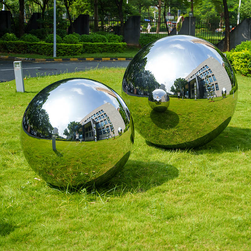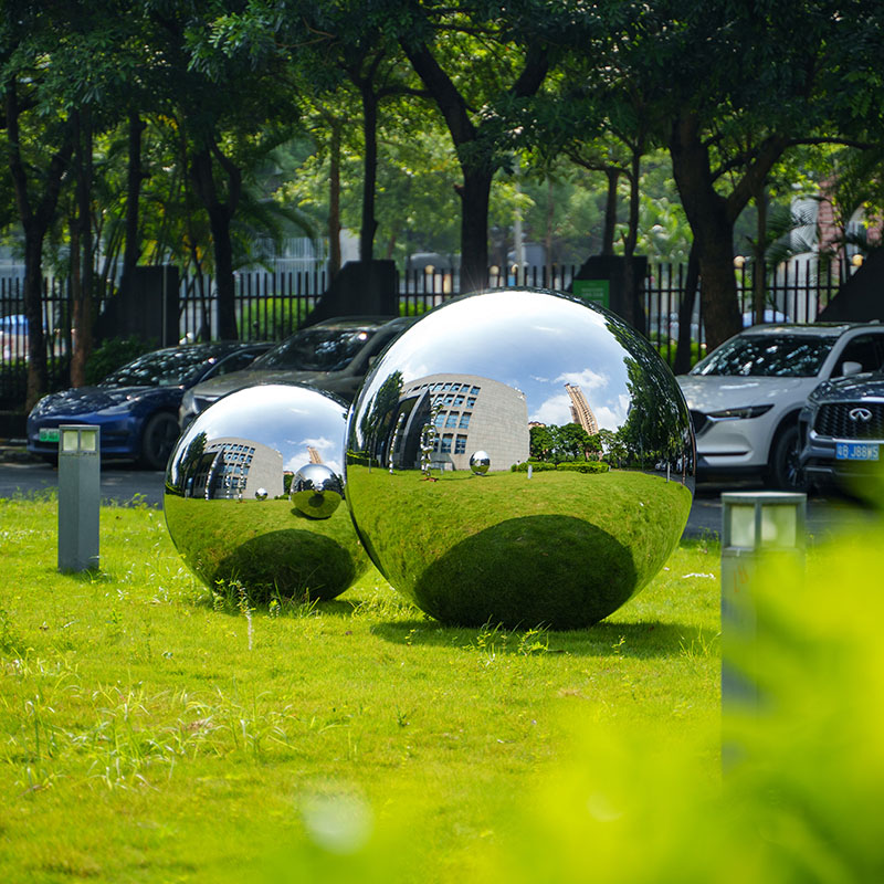 This mirrored stainless steel ball sculpture is a modern minimalist outdoor decorative artwork. It is made of high-quality stainless steel and has been precisely polished to a smooth mirror-like surface, reflecting the beautiful scenery of the surrounding environment. The sculpture is suitable for public places such as squares, parks, and gardens, and can also be used as a decoration for private courtyards, adding a modern artistic atmosphere to your space. It is highly weather-resistant, easy to clean and maintain, and lastingly beautiful.