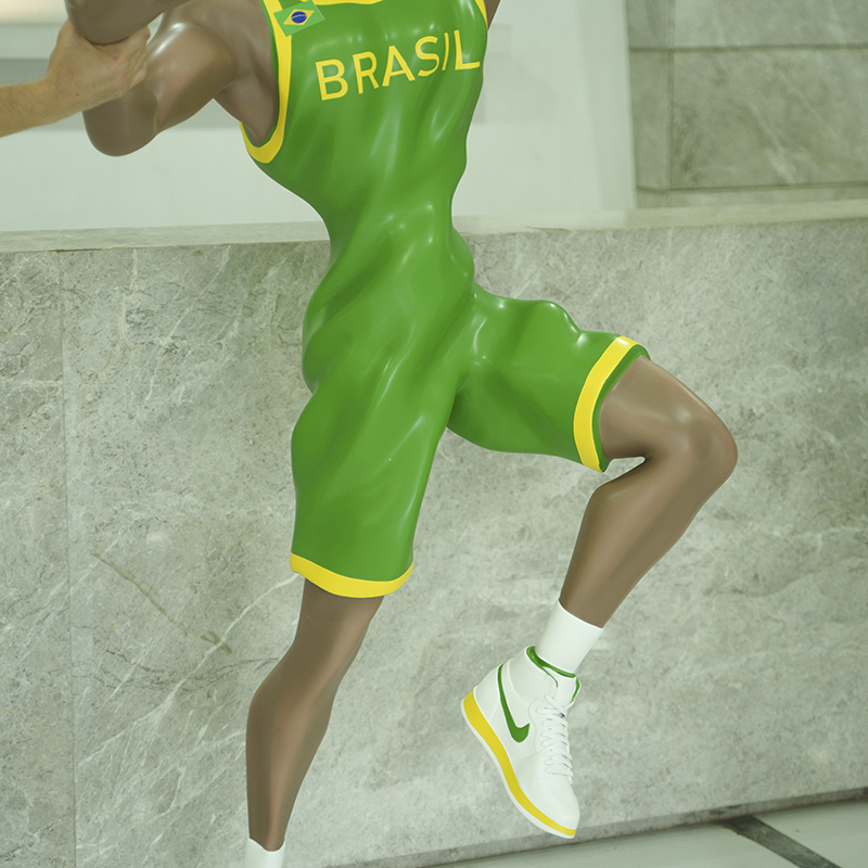 Modern Brazilian basketball player dunking sculpture