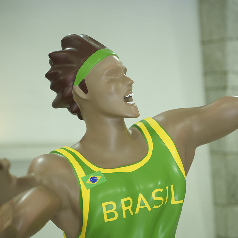 This dynamic Brazilian basketball player sculpture shows the power and dynamism of the athlete’s dunk. It is made of high-quality fiberglass and is suitable for decoration in basketball-themed events, gymnasiums, public spaces and other places, highlighting the spirit of sports and artistic beauty.