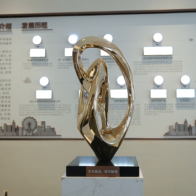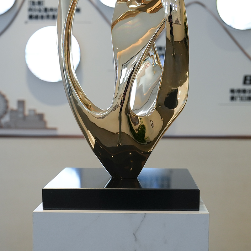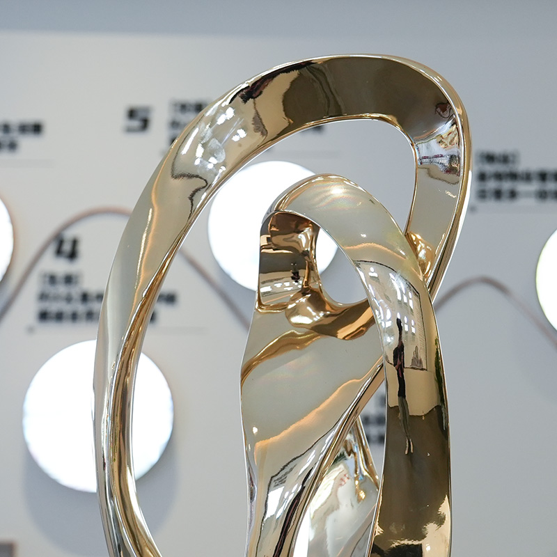 This modern stainless steel sculpture, named “Ring of Harmony”, symbolizes balance and harmony through its smooth curves and ethereal shape. Its smooth mirror effect shines brightly under the light, suitable for being placed in offices, hotel lobbies or home spaces, adding a modern artistic atmosphere and profound philosophical connotations to the environment.