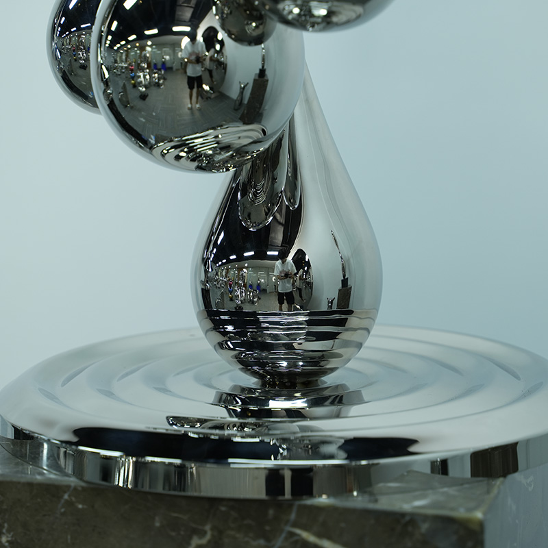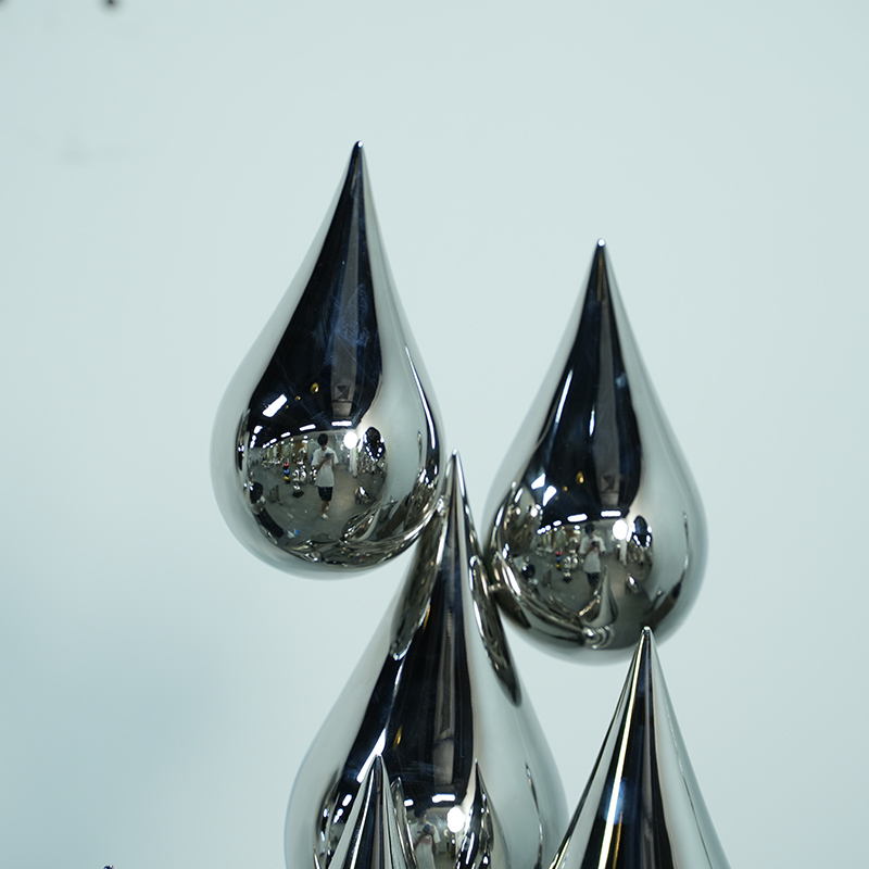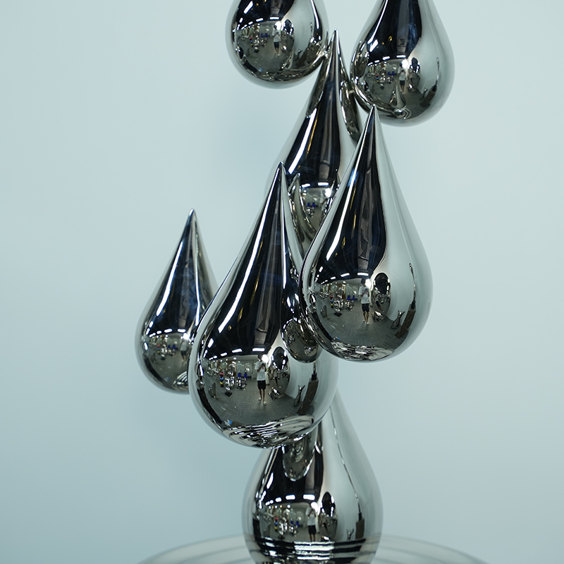 “Ripple Leap” is a modern art sculpture that interprets the flow and purity of nature in the form of elegant water drops. The sculpture is composed of multiple delicate metal water drops, which are stacked layer by layer, as if leaping in the air, bringing a visual sense of dynamics and harmony. The surface of each water drop is carefully polished to reflect the surrounding environment, forming a fascinating mirror effect. This artwork can not only add a unique artistic atmosphere to your home, but also serve as a visual focal point in the office space, symbolizing the endless vitality and beauty of nature.