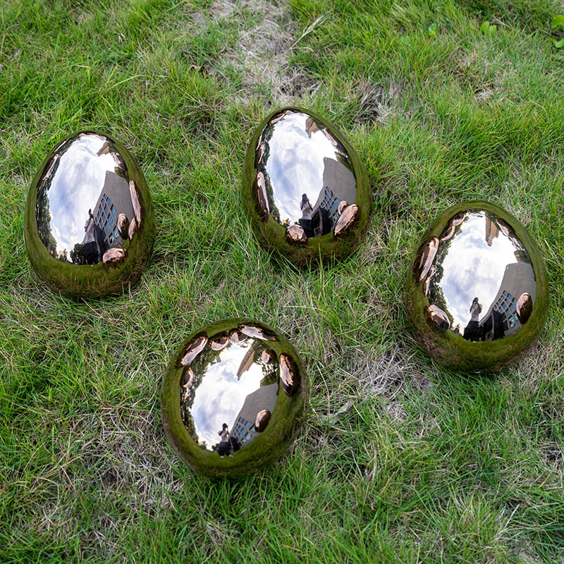This stainless steel egg sculpture set adds a modern artistic touch to your yard or garden. Each sculpture is made of high-quality stainless steel with a smooth surface, excellent corrosion resistance and reflective effect. Suitable for outdoor or indoor decoration, by combining sculptures of multiple sizes, create a vivid and interesting visual effect.