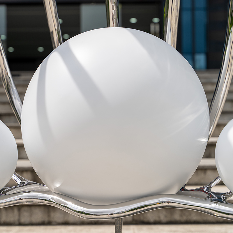 “Glorious Shell” is a modern art sculpture inspired by nature. Made of high-quality stainless steel, it looks like an unfolded shell with three pearls in the center, symbolizing wealth and preciousness. The smooth metal surface gives the sculpture a unique modern feel, suitable for installation in courtyards, squares or in front of buildings, becoming a highlight in the space. This sculpture is not just a decoration, but a perfect fusion of nature and art, adding a unique charm to your environment.