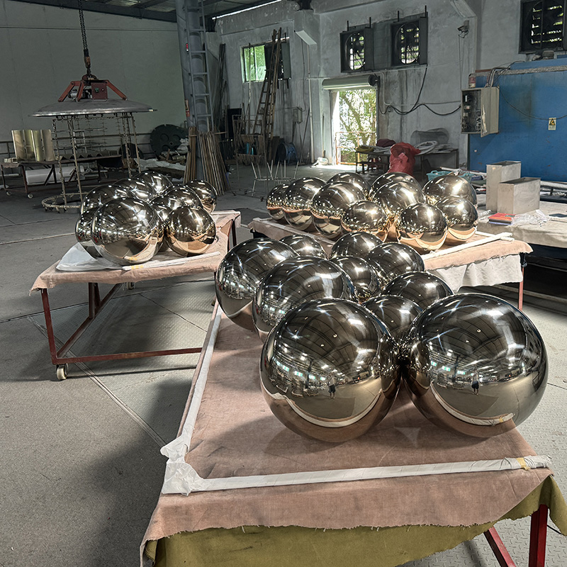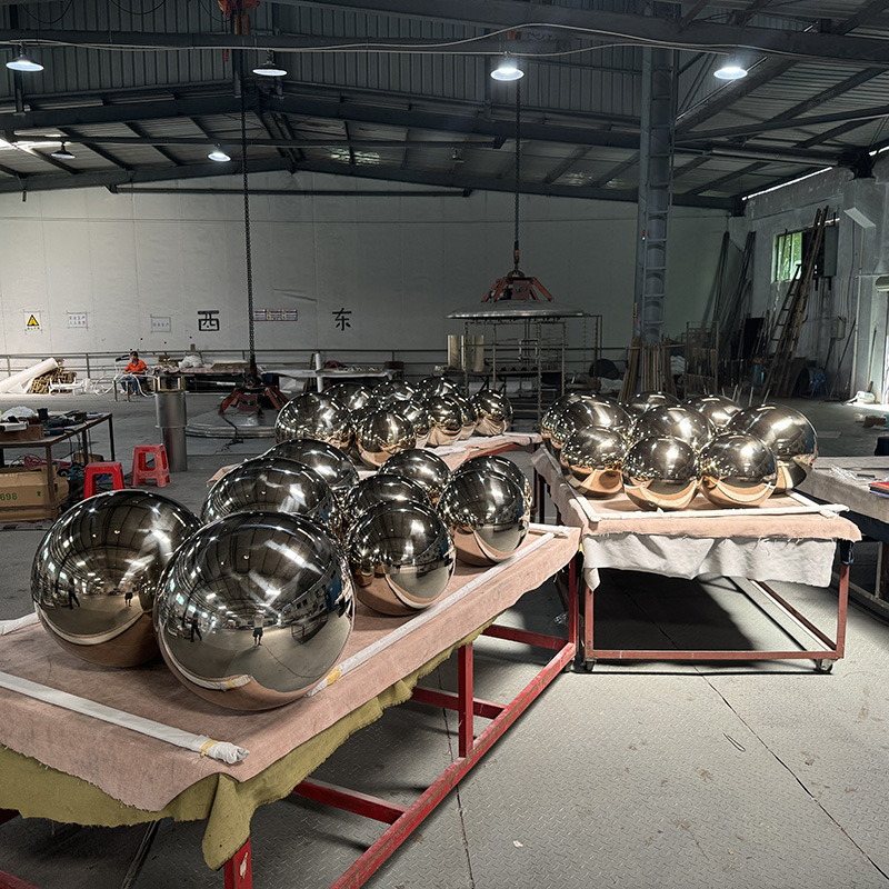 These stainless steel balls are made of high-quality 304 stainless steel, and the surface is finely polished to present a perfect mirror effect. They are suitable for indoor and outdoor environments, especially for artistic decoration in public places such as courtyards and squares. These sculptures are not only rust-proof and durable, but also full of modern sense, which can enhance the artistic atmosphere of the surrounding space. The size of the ball can be customized, and a variety of specifications are available to meet the needs of different places.