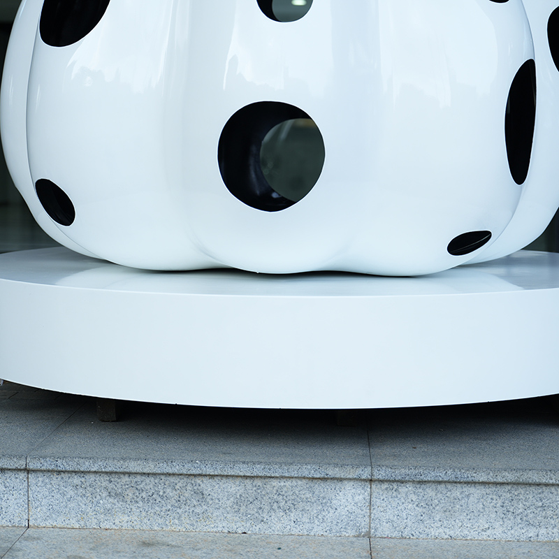 This polka dot pumpkin sculpture combines art and creativity. It is made of high-quality stainless steel with a smooth appearance and a weather-resistant white paint and black polka dot pattern on the surface. Its unique shape and bright colors make it suitable for public places such as parks and squares, and can also be used as interior decoration to add vitality and fun to the environment. This sculpture is not only beautiful, but also durable, and can maintain the integrity and gloss of its appearance for a long time.