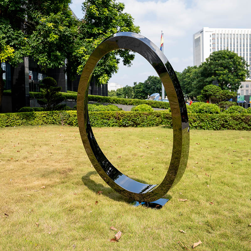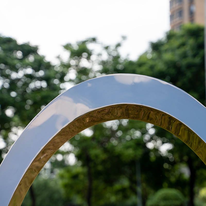 “Ring of Eternity” is a simple and symbolic stainless steel sculpture with a circular ring design, symbolizing eternity and infinity. Its smooth mirror-polished surface not only adds a modern feel, but also reflects the surrounding scenery, allowing the sculpture to blend naturally with the environment. This sculpture is a representative work of modern minimalist art and is suitable for installation in gardens, courtyards or in front of building exteriors. It can be used as a decoration and add a touch of artistic atmosphere to the space.