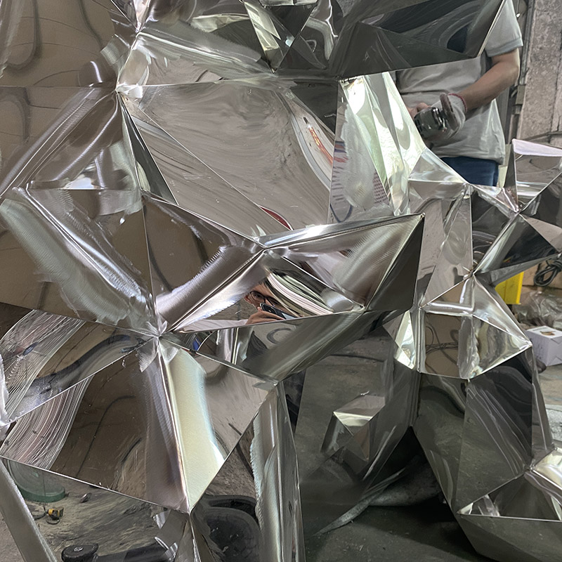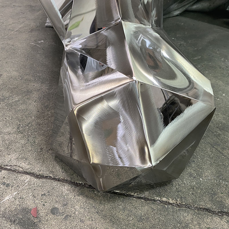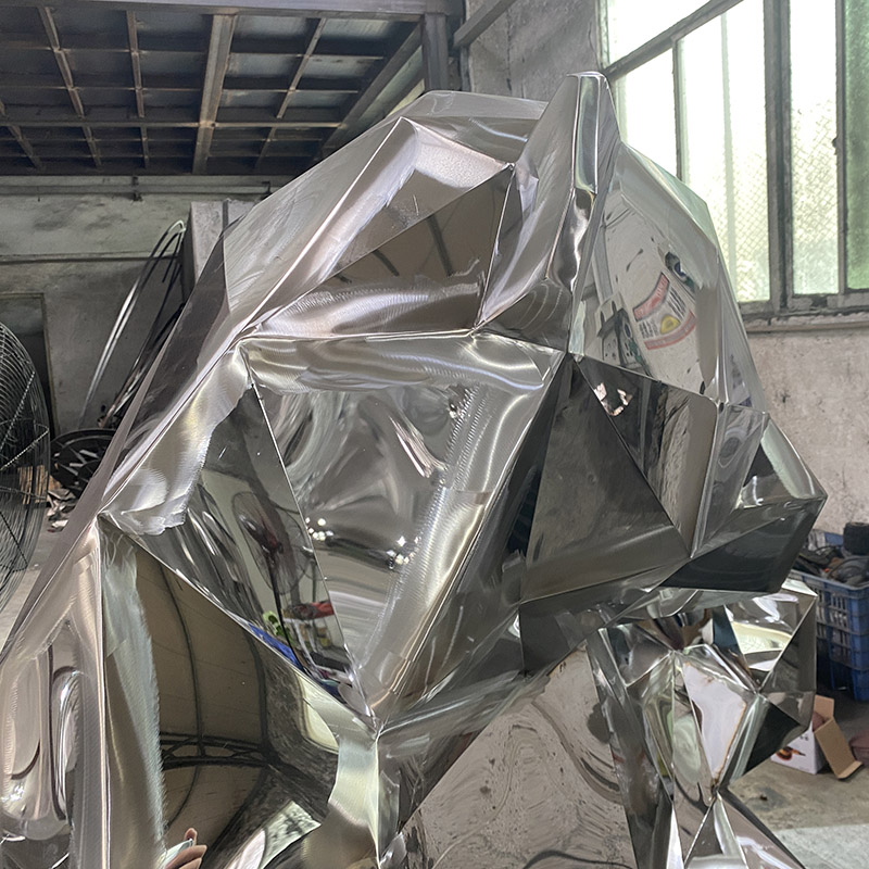 This modern stainless steel sculpture, named “Geometric Silver Bear”, shows the strength and majesty of the bear through its unique multi-faceted geometric design. Made of highly reflective stainless steel, it is suitable for display in public spaces, art exhibitions or gardens. Its modern shape adds an artistic touch to the environment and is a perfect fusion of nature and modern design.