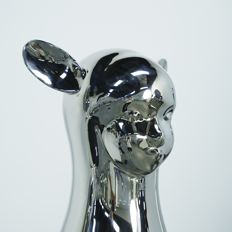 This silver lamb sculpture is carefully crafted from high-quality stainless steel, with a smooth and shiny surface, showing a refined modern feel. The sculpture design is simple and elegant, combining the perfect fusion of animal image and artistic creation.