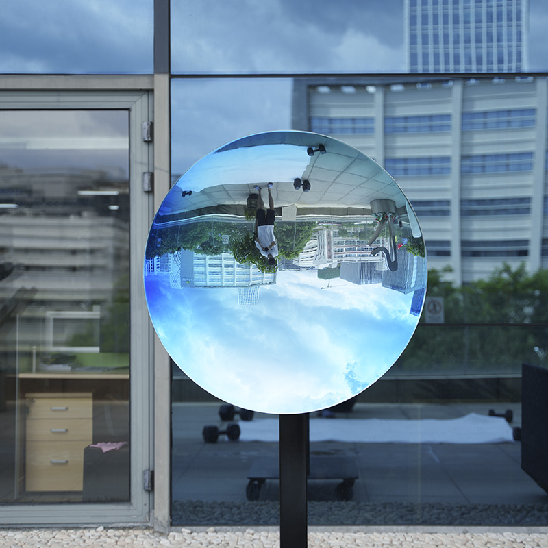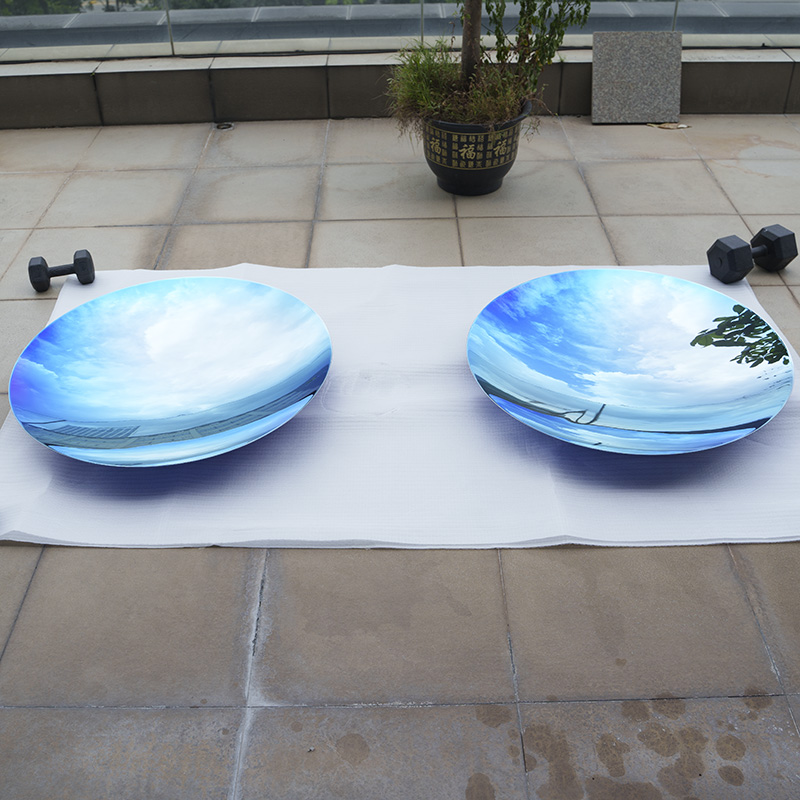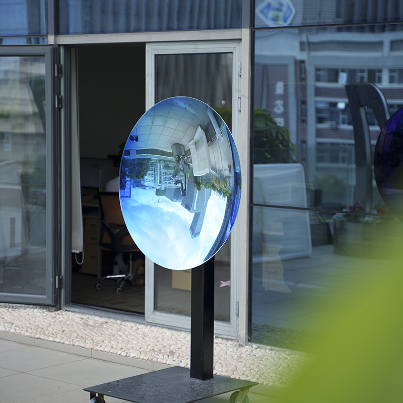 This concave-convex mirror, with its simple round design and highly reflective blue surface, presents a unique reflection effect, just like a window bringing the natural scenery in. Its modern art style is suitable for various scenes, enhancing the beauty and artistic atmosphere of the environment.