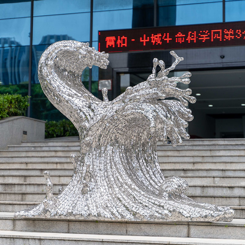 Frozen Waves is a stainless steel sculpture inspired by nature, capturing the frozen gesture of waves at the most intense moment. The sculpture is composed of countless irregular small pieces, showing the dynamic beauty of flowing texture and power. As a large outdoor sculpture, “Frozen Waves” not only has a strong visual impact, but also can be integrated with the surrounding environment, adding a unique artistic atmosphere to squares, parks or corporate buildings. This work symbolizes the power and eternity of nature, and is a perfect combination of modern art and natural landscape.