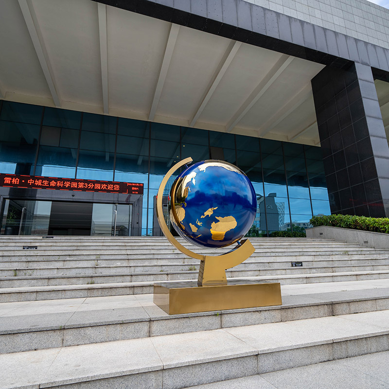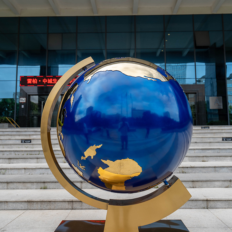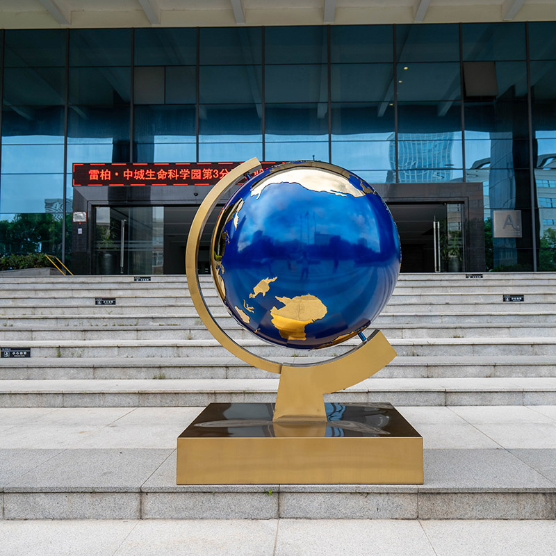 This “Blue Globe” sculpture is a modern work of art made of high-quality stainless steel. Its design combines the classic elements of a globe with the contemporary minimalist style. The sculpture surface uses a perfect combination of metallic blue and gold to show the beauty and magnificence of the earth. This sculpture is very suitable for outdoor courtyards, public places, commercial office buildings and other scenes, adding a touch of modern art to the environment, and it is also a vivid embodiment of popular science education.