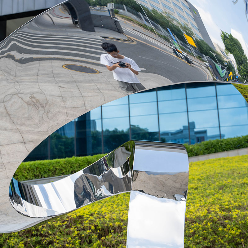 This unique stainless steel sculpture captures the essence of a wind’s dance, with its smooth, flowing curves and mirror-polished surface. The reflective finish not only amplifies the visual appeal but also mirrors the surrounding environment, adding dynamism to the space. Ideal for outdoor squares, gardens, or building forecourts, this piece is a perfect blend of modern architecture and nature. It’s an excellent choice for art enthusiasts, serving as a stunning focal point to elevate the aesthetic of any setting.